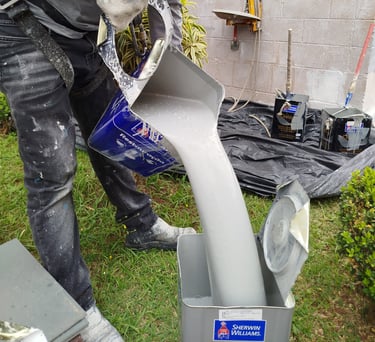 Inclui raspagem de tintas soltas, preparação da superfície tratando trincas e fissuras com produtos específicos e aplicação de massa acrílica e acabamento.