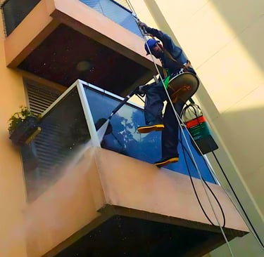 É a limpeza de toda a superfície externa utilizando água em alta pressão para remover sujeiras, poluição, fungos e resíduos acumulados.